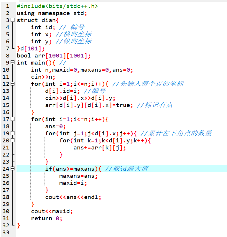 【例75.1】 坐标统计